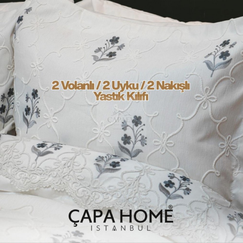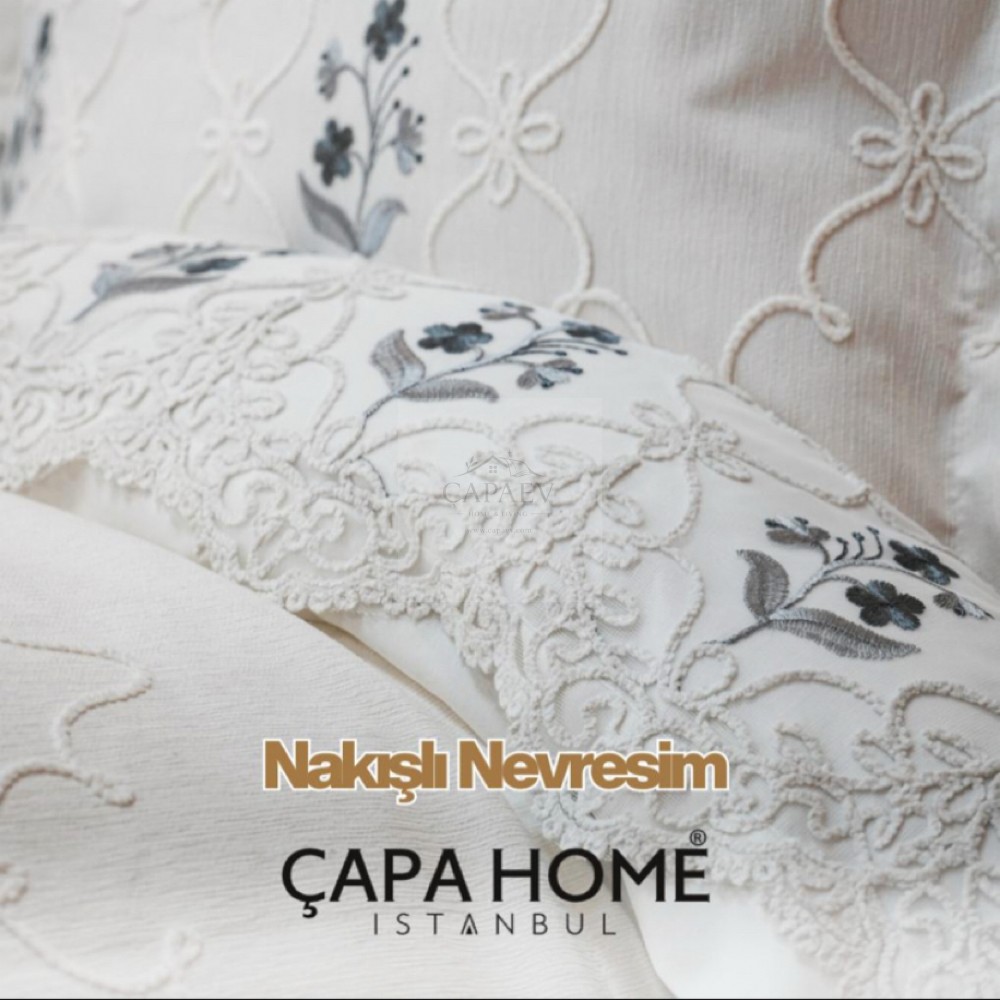 Çapa Home Gelin Seti – Çeyizlik Çift Kişilik Yatak Örtüsü Seti Daniela 9 Parça Nakılşı Gelin Seti