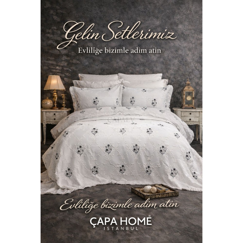 Çapa Home Gelin Seti – Çeyizlik Çift Kişilik Yatak Örtüsü Seti Daniela