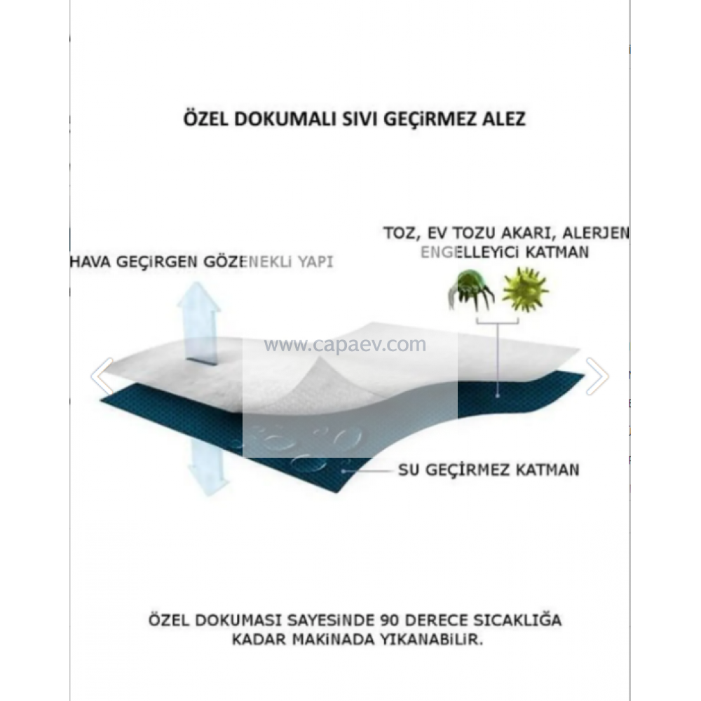Micro yumuşak yüzeyi ve su geçirmez membranı sayesinde yatakların ömrünü uzatır. Üst yüzeyi polyester ve çok yumuşaktır. Arka yüzü membranlı olup su geçirmez. Kenarları komple lastikli olup yatağa geçirilerek kullanılır.