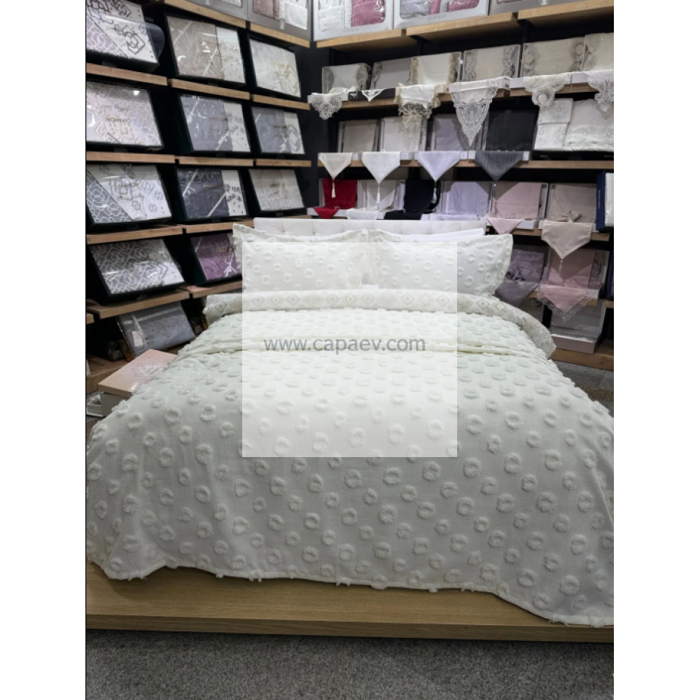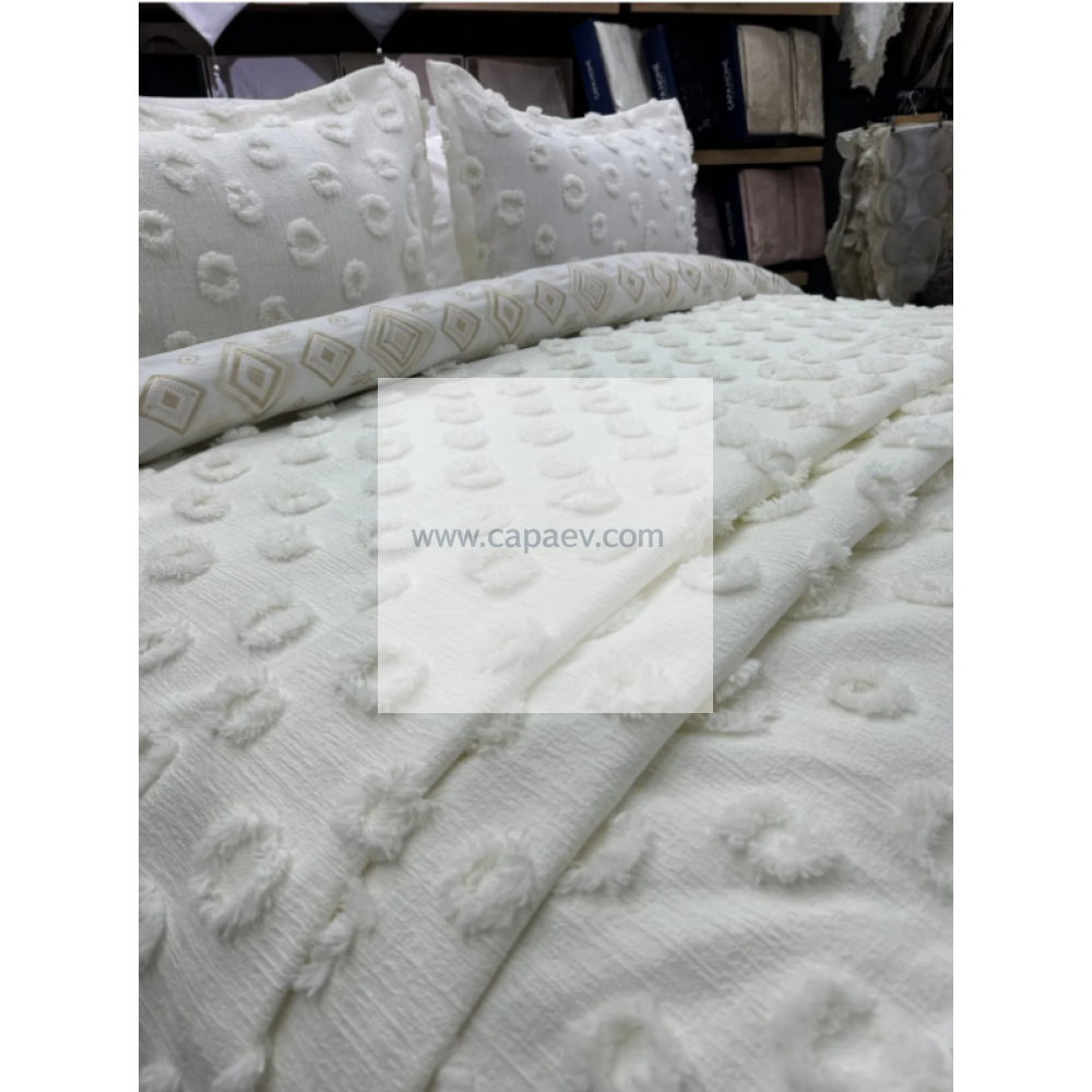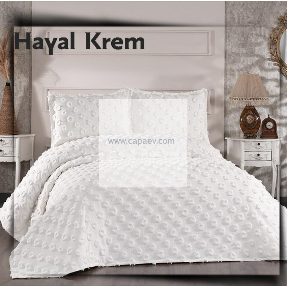 Hayal Krem Lüks Şönil Yatak Örtüsü
